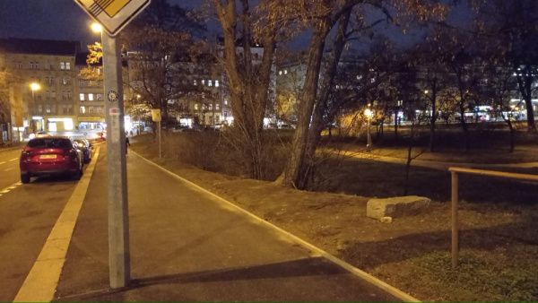 V ulici Siwiecova se u lampy číslo 300 664 nachází jeden kus pohozeného přebytečného obrubníku.