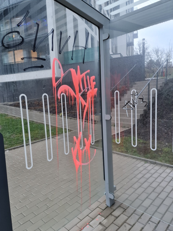 Rozbitá střecha na autobusové zastávce Olgy Havlové směr do centra. Já jsem nahlásil tento problém ještě v červnu, ale to pořád není vyřešeno.