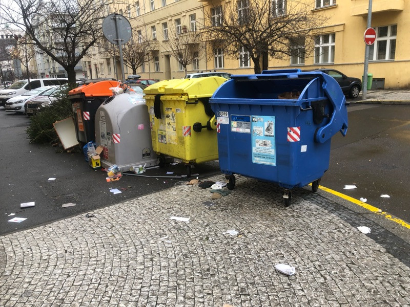 Bohužel nepořádek u sběrných popelnic.