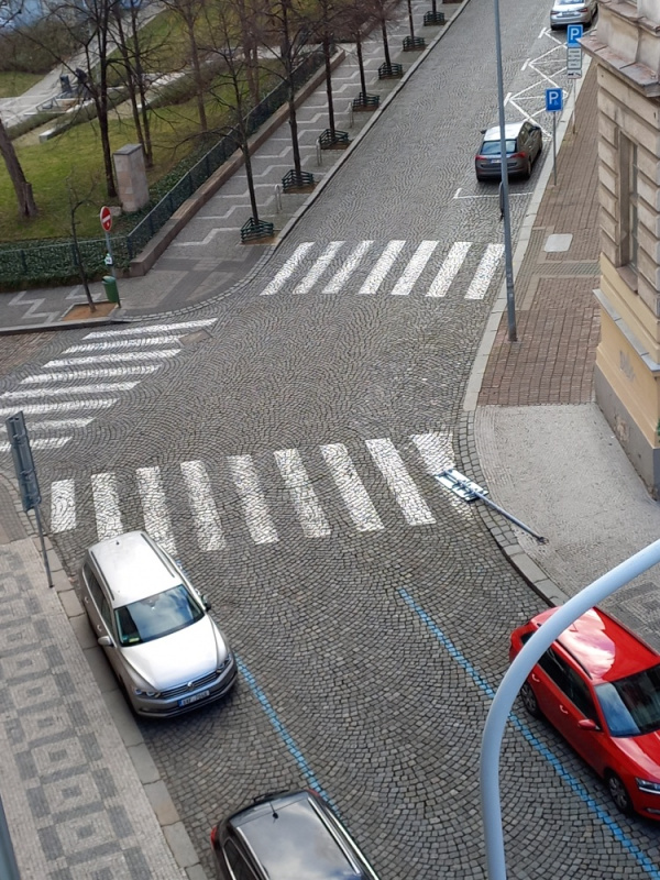 Dobrý den, zlomená značka, druhá otočená. Na začátku ulice Štítného od Havlíčkova náměstí. Děkují.