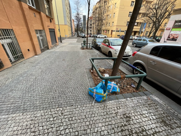 Odložené odpadky jsou po dnešním větru všude po ulici. Díky za pomoc