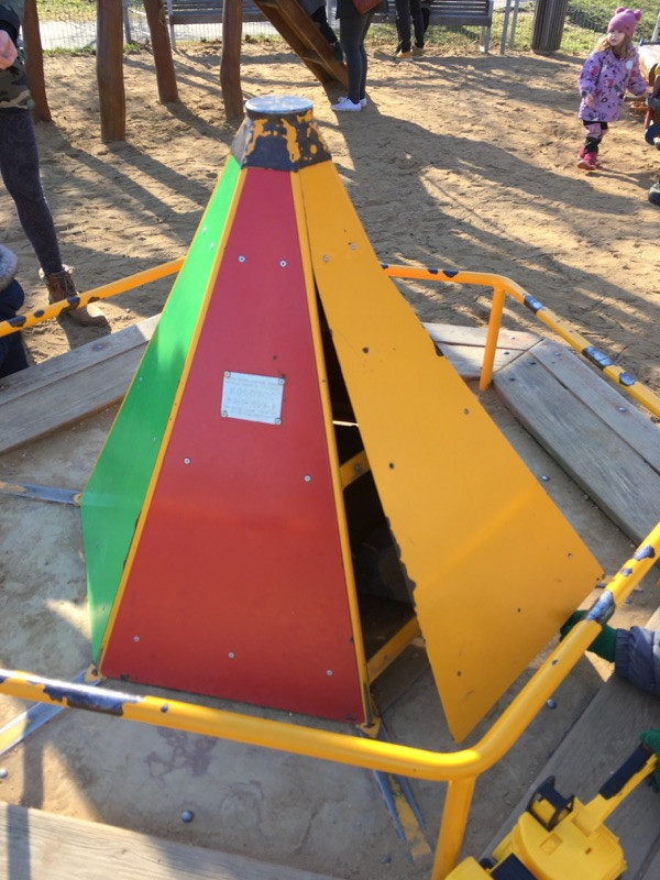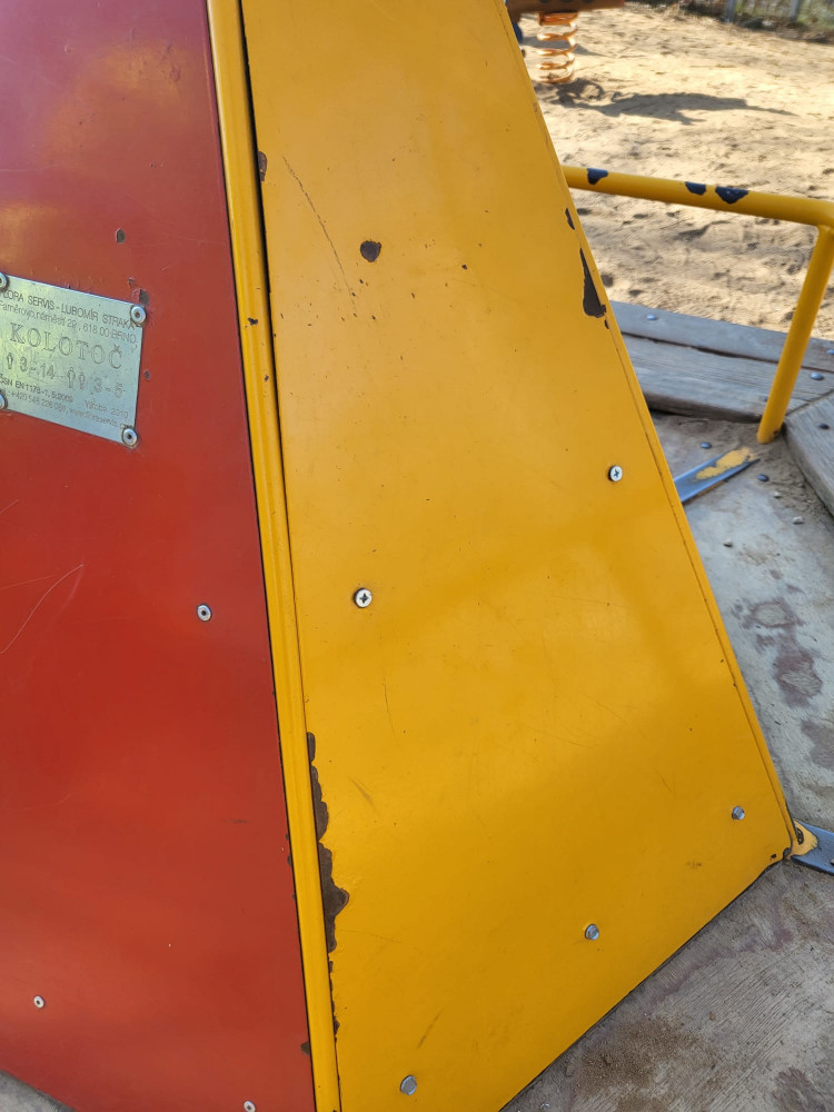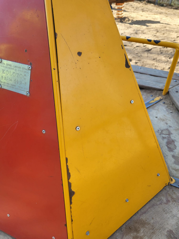 Rozbity kolotoc,tkanina na piskovisti,chtelo by dosypat pisek