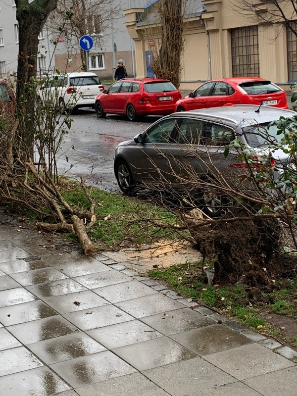 Spadlý strom kvůli poryvu větru. Pořezán hasiči.