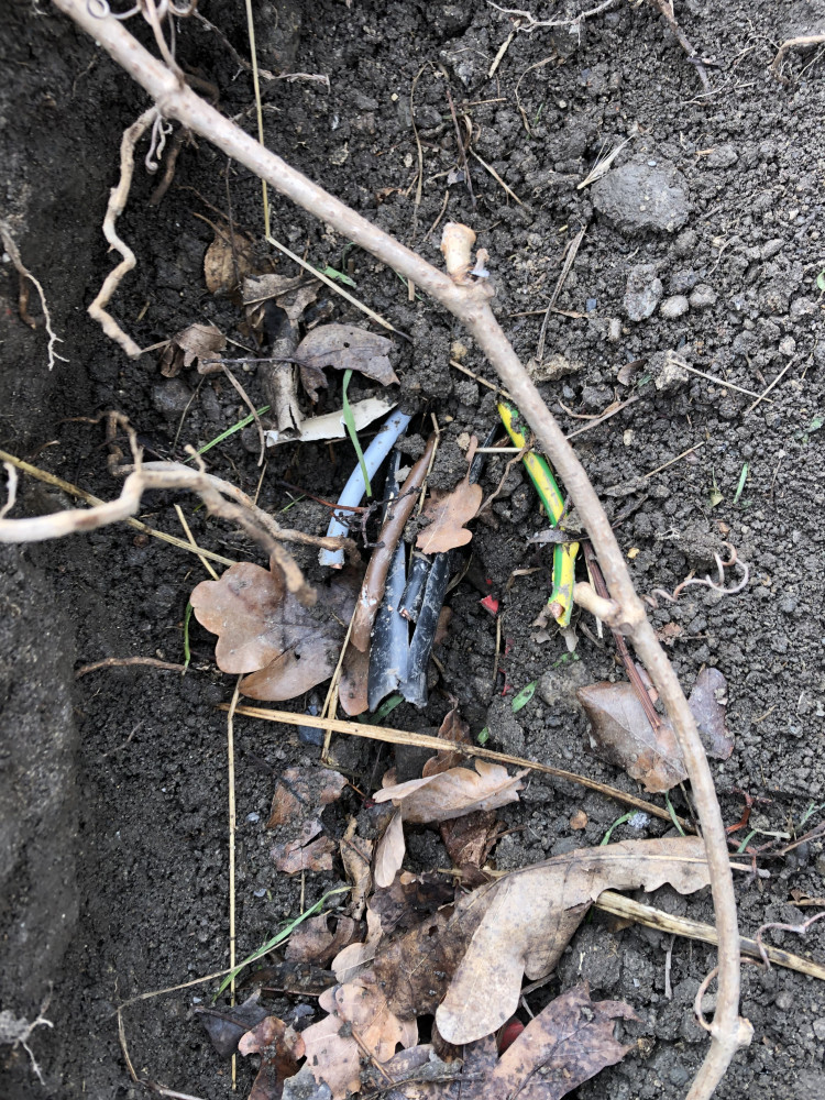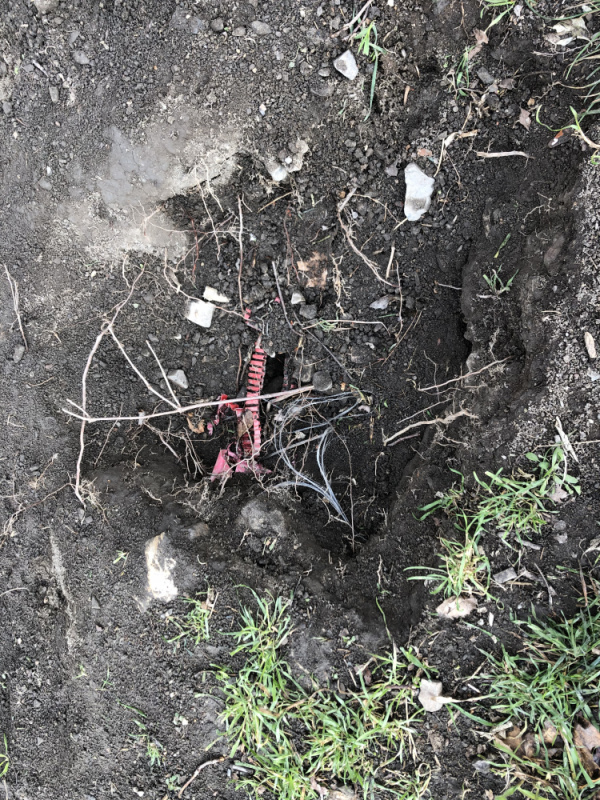 Zdá se, že někdo vykopal díry vedle lamp, přeřezal kabely a vytahal je nejspíš ze země do sběru.