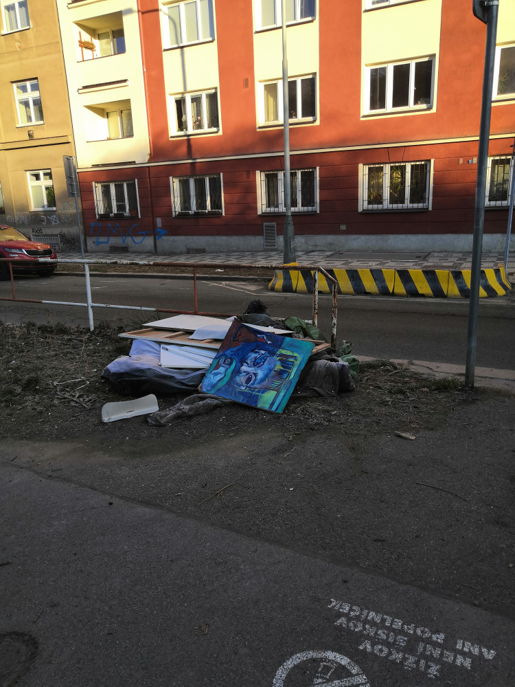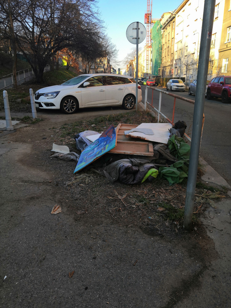 Na křižovatce ulic Jeseniova a Zelenky Hajského, naproti kontejnerovému stanovišti se už delší dobu povalují kusy nábytku a další odpad.