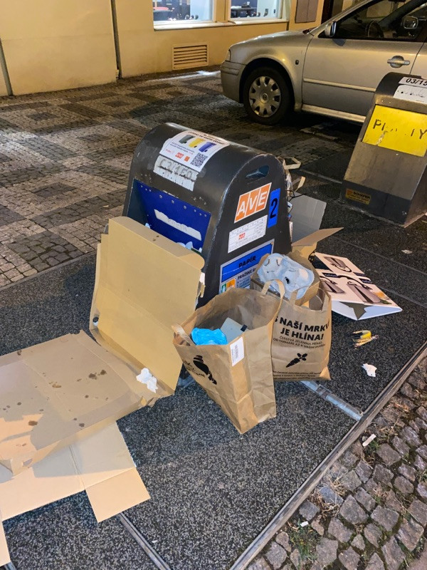 děkujeme za upozornění, Předáno firmě AVE. Vývoz a úklid proběhne v pravidelném termínu.