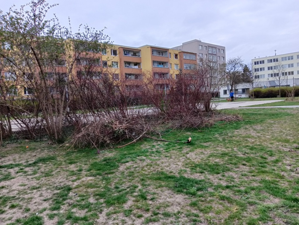 tento pozemek je komplikovaný, protože parcelní číslo, na kterém se keře i pořezané větve nachází je ve vlastnictví České republiky a správu pozemku má zajišťovat Úřad pro zastupování státu ve věcech majetkových. Předáno!