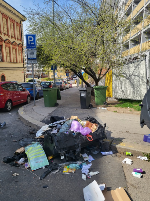 Dobrý den, děkujeme za Váš podnět. Jedná se o popelnici na komunální odpad. Výměnu a odstranění staré si musí zajistit vlastník či SVJ domu, ke kterému nádoba patří. Předáme prozatím AVE jestli starou nádobu odstraní. Pavel, Čistá Trojka