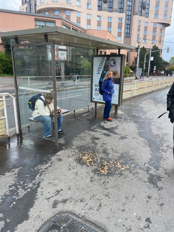 Nepořádek na zastávce tramvaje Želivského ve směru do centra. Už je to tu 3 dny.
