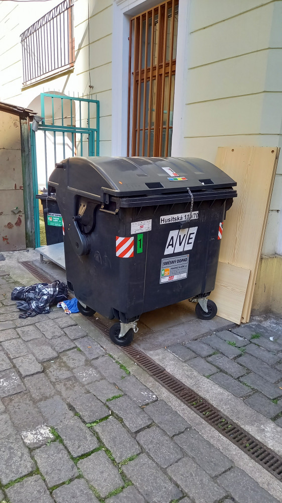 Nepořádek kolem kontejnerů a v průjezdu