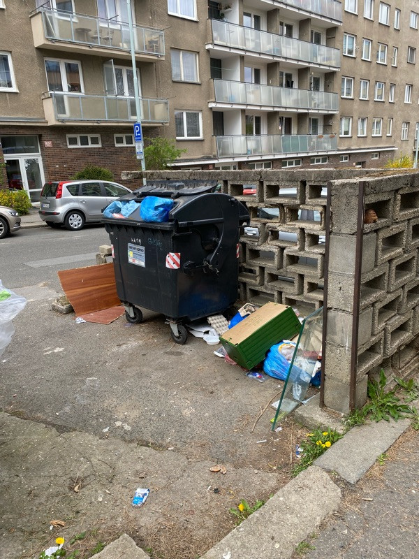 Dobrý den, děkujeme za Váš podnět. Za tento nepořádek odpovídá a je povinen ho uklidit vlastník kontejneru, kterým bude nejspíše majitel, či SVJ z nejbližšího domu... MČ-P3