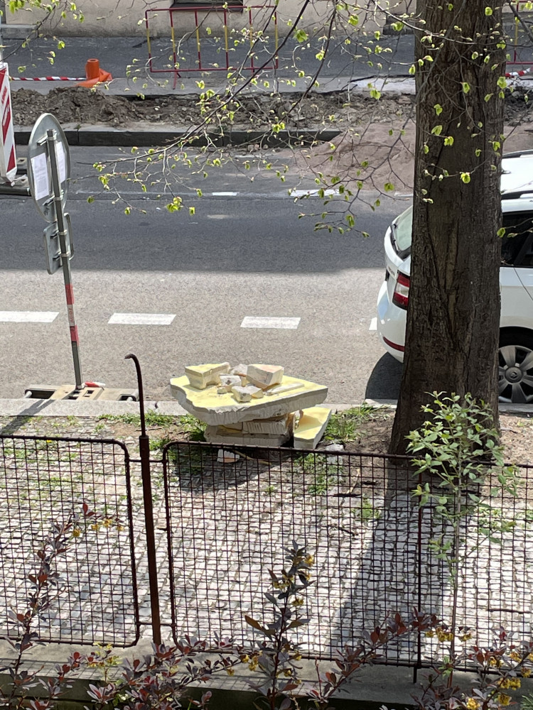 Několikáty den na chodníku před domem U Kněžské louky 31,P3 vyhozene zbytky stavebního materiálu.