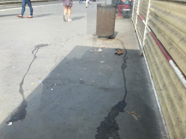 Navíc pod schody vedle silnice je už úplné smetiště. Zastávky tramvají se záplatovaným asfaltem jsou přímo nechutné - nepořádek, rozbité odpadkové koše, stará špína všude kolem - při tak velkém provozu lidí by bylo potřeba uklízet snad denně... Opravená fontána bez vody a luxusní hotel vedle, to návštěvníci Prahy asi zírají a stačilo by celkem málo - pravidelná údržba.