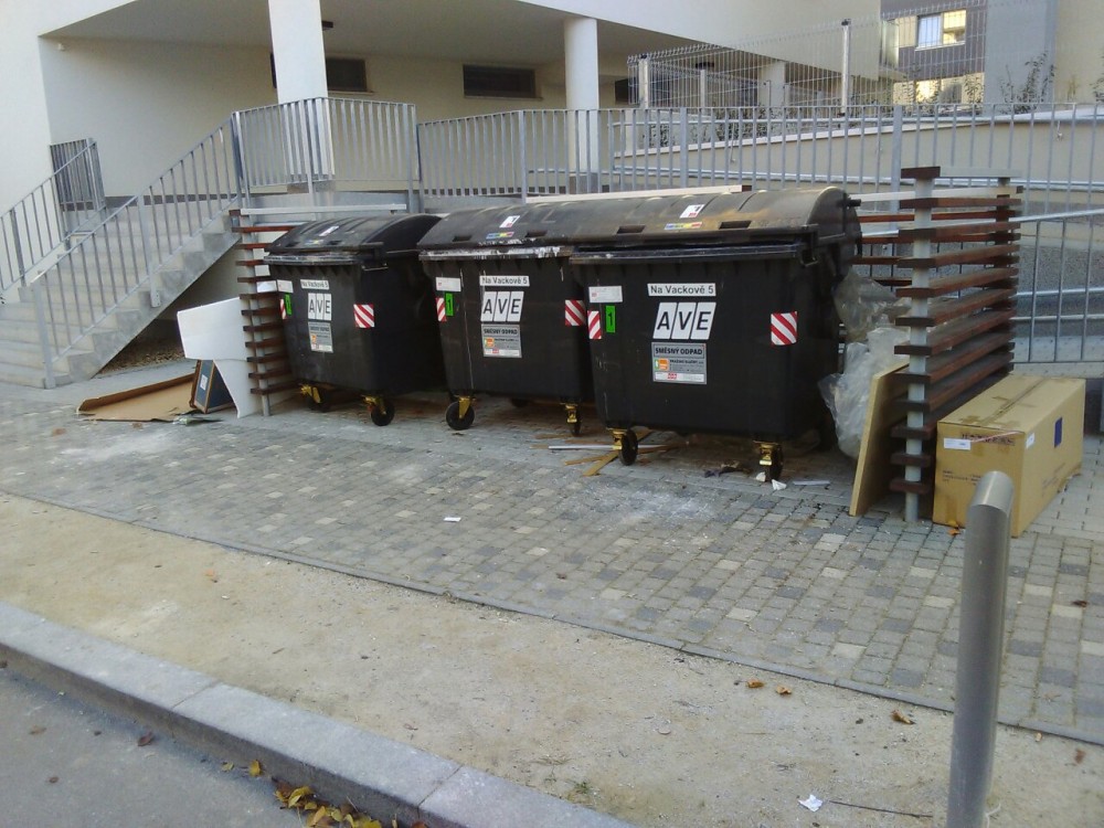 Neporadek po vyvezeni kontejneru, uz tradicne preplnenych.