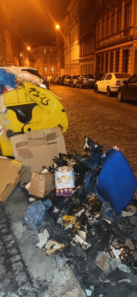 někdo spálil kontejner na papír