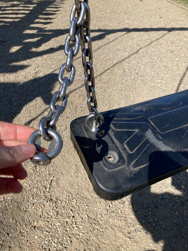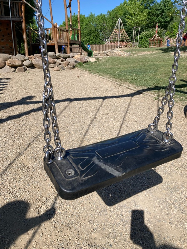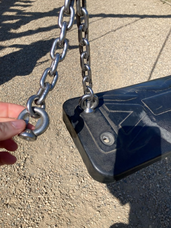 Rozbitá houpačka - utržený jeden řetízek, není stabíní na houpání