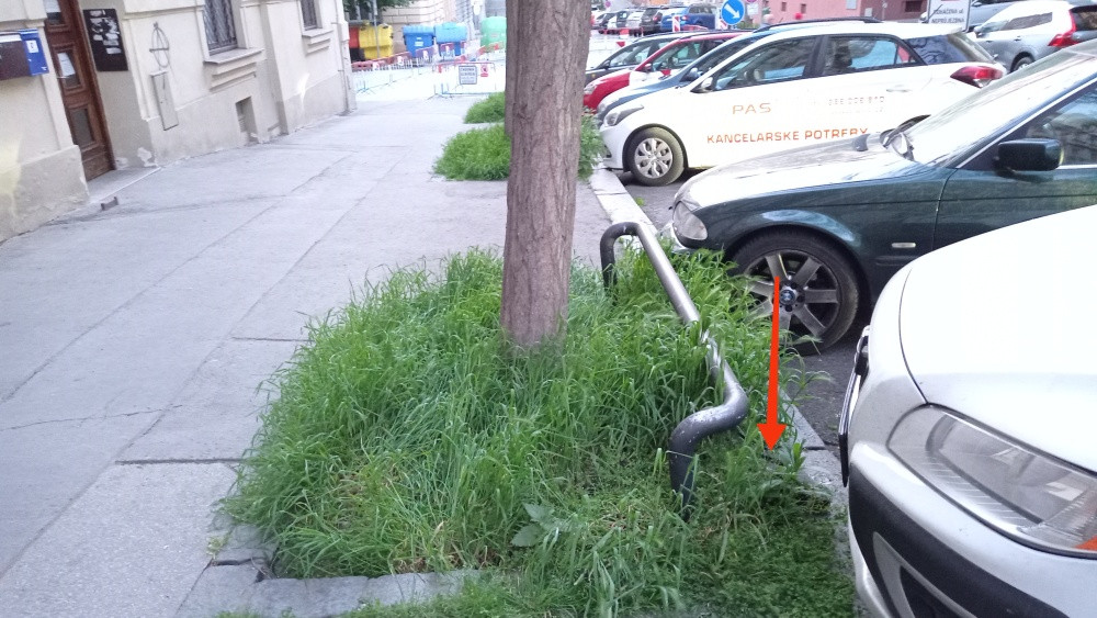 V ulici Domažlická se v rabátku před domem č.p. 1139/11 nachází již několikrát hlášený, zapomenutý, dnes již travou značně zarostlý podstavec po přenosné dopravní značce.