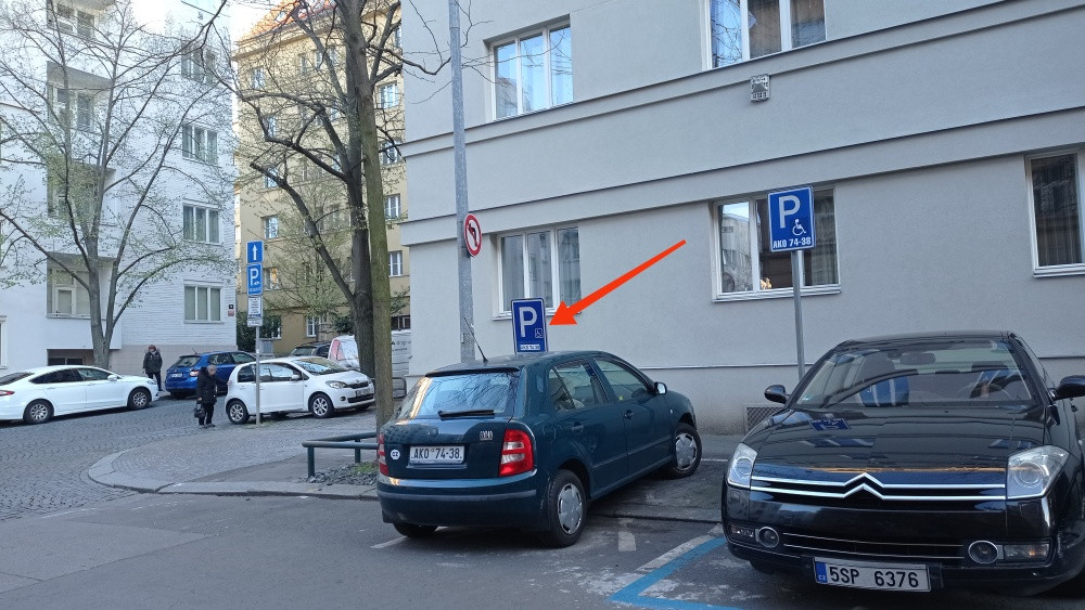 Na konci ulice Jagellonská se u křižovatky s ulicí Radhošťská nachází již rok zapomenutá přenosná značka vyhrazeného parkování pro invalidu. Označuje totiž jeho obvyklé parkovací místo a stojí tak vedle trvalé DZ stejného znění.