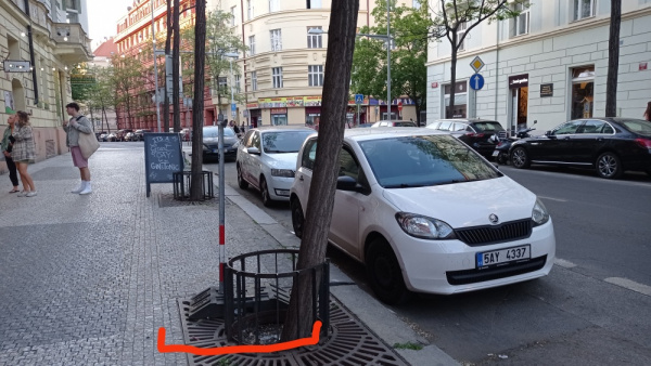 V ulici Slavíkova se před křižovatkou s ulicí Zvonařova ve směru od náměstí Jiřího z Poděbrad nachází zapomenutý zbytek přenosné dopravní značky, konkrétně podstavec s tyčí.