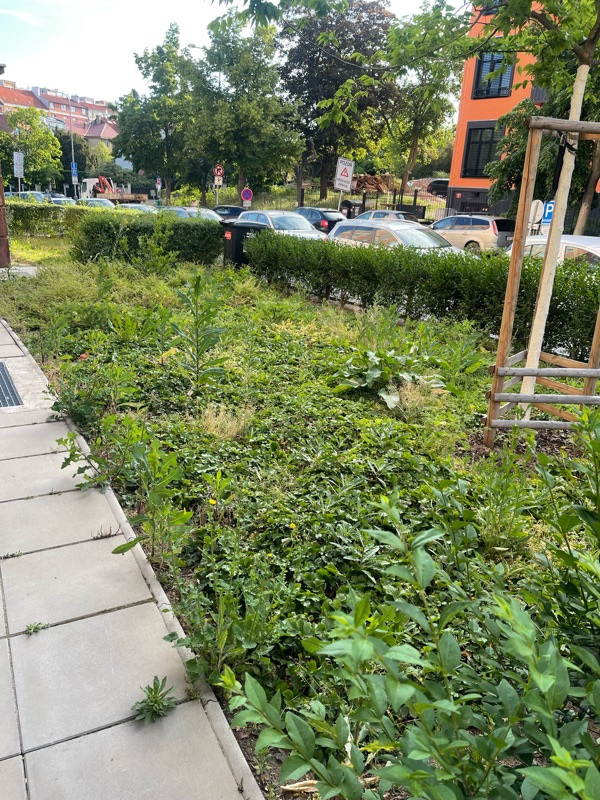 Zanedbaná předzahrádka ve správě Prahy 3.