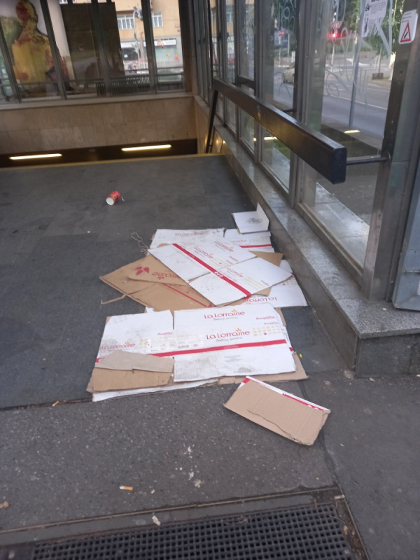 u vchodu do metra na Jiřího z Poděbrad u autobusové zastávky jsou pohazene kartony.