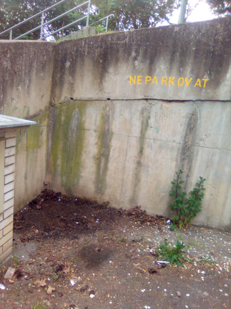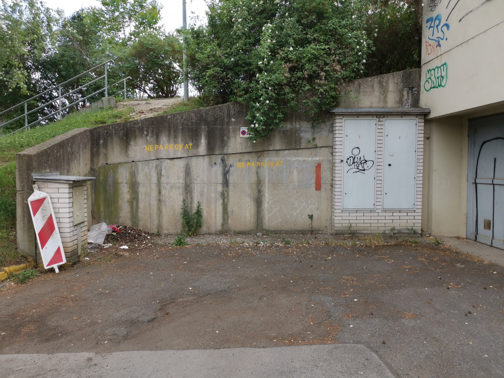 Neuklizene odpadky a listí na pozemku HMP ve správě MČ P3 neodstraneno ani po úklidu ulic 23.5.22. Lokalita: Příjezdová veřejná komunikace k objektu garáží na křižovatce Pod Lipami / Plavinová v blízkosti kontejnerů na tříděný odpad.