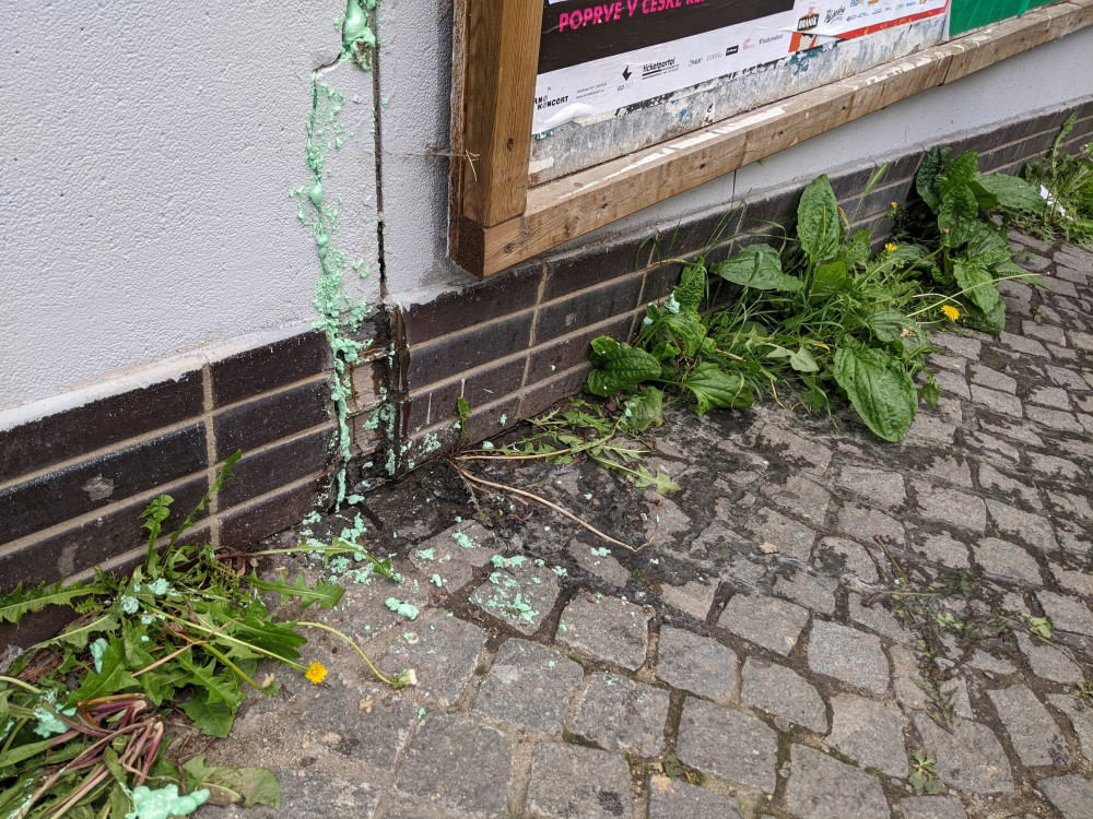 Již několik týdnů unikají splašky z kanalizace do žižkovského tunelu. Bylo již mnohokrát hlášeno, všechna hlášení jsou označena jako vyřešená, je vidět i amatérský pokus o utěsnění montážní pěnou, ale odpadní voda se silným zápachem do tunelu teče stále :(