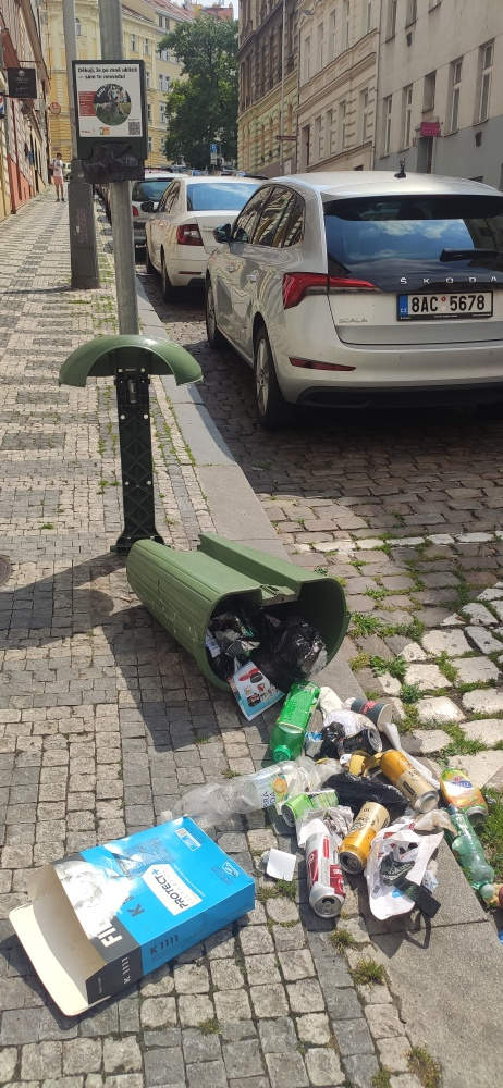 rozbitý odpadkový koš