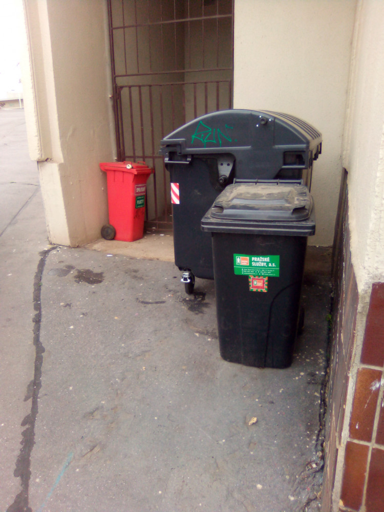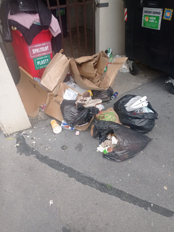 Opět nepořádek u sběrných nádob na odpad u Riapsu (roh Chelčického a Prokopovy ul.)