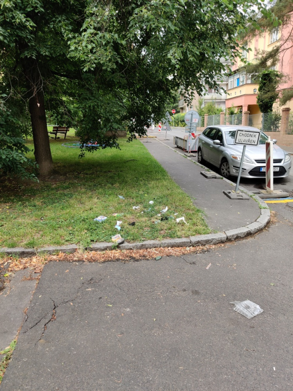 Nepořádek u chodníku.