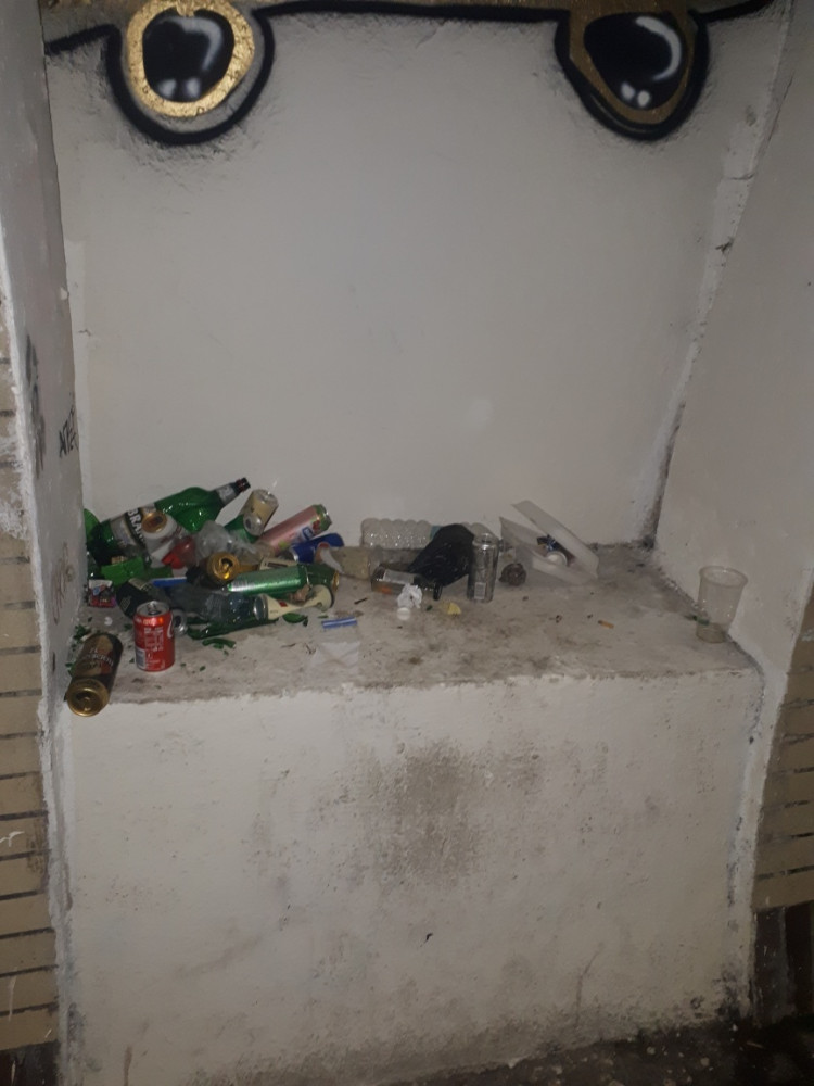 Výklenek v tunelu se stává popelnicí. Díky za úklid a snad nějakou cedulku nebo odpadkový koš.