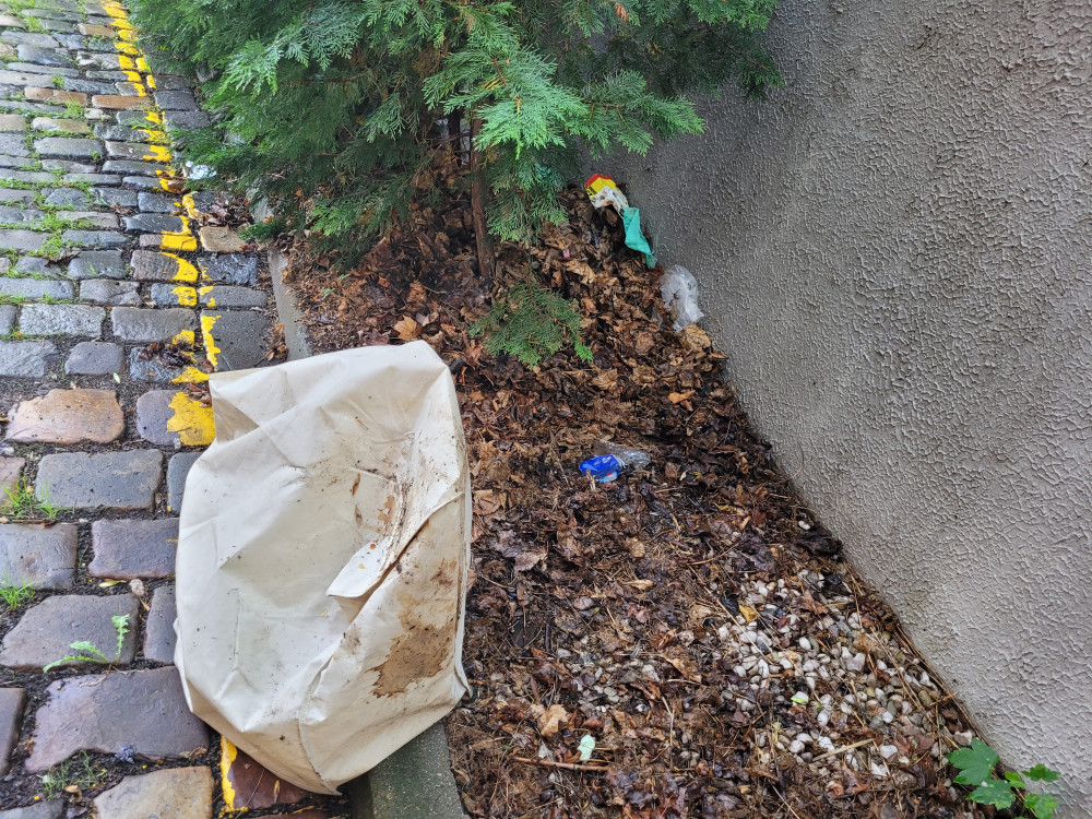 Nepořádek před vchodem do domu...