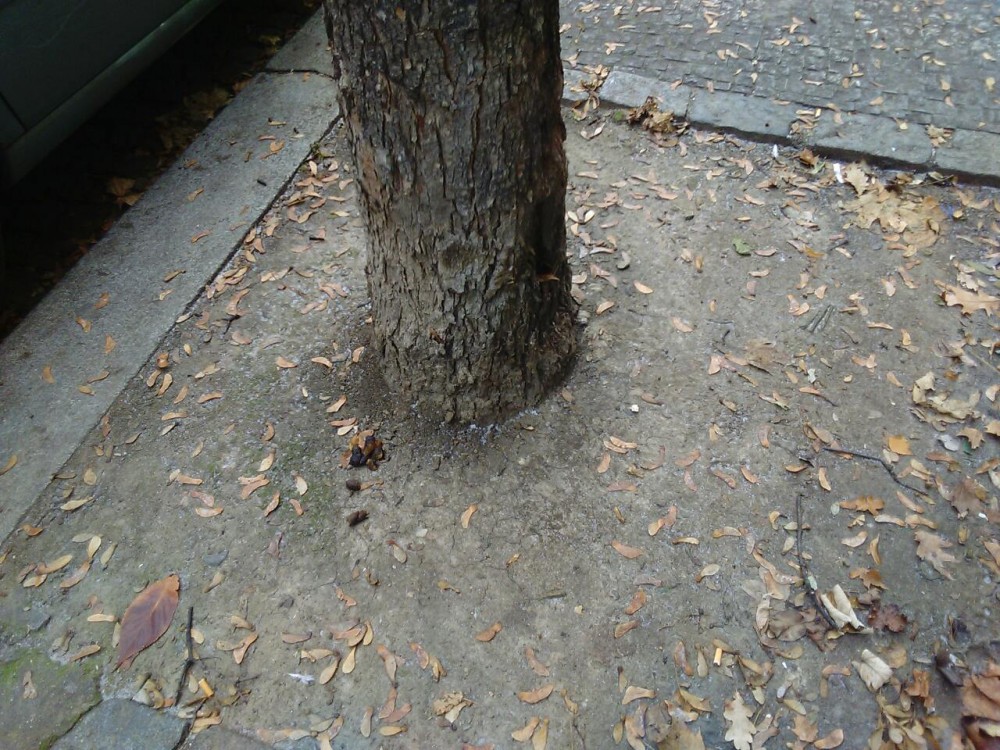 Množství psích exkrementů kolem stromů po obou stranách ulice. Děkuji za odklizení.