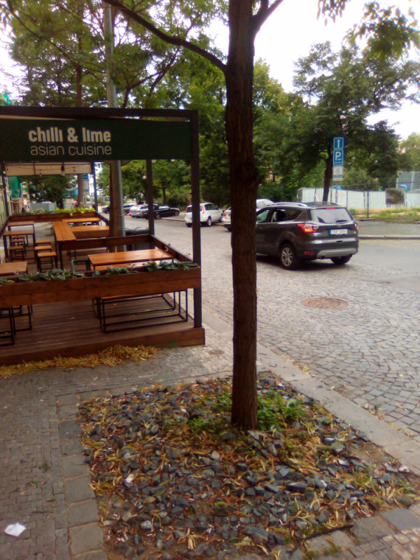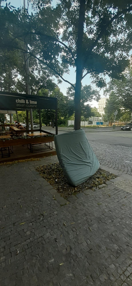 Odlozena matrace u stromu vedle restaurace chilli& lime Diky za odklizeni