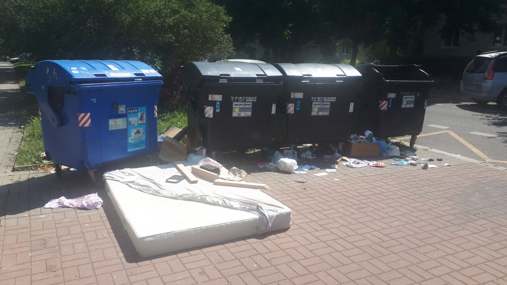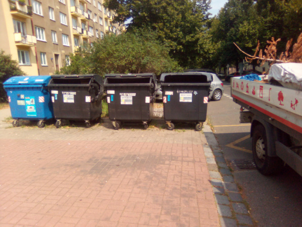 Opět totální bordel kolem kontejnerů. Viz. Foto.