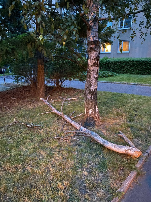 Ulomena vetev, asi by stalo zato strom prohlednout, pulka se zda uhnila. Dekuji