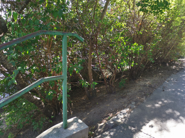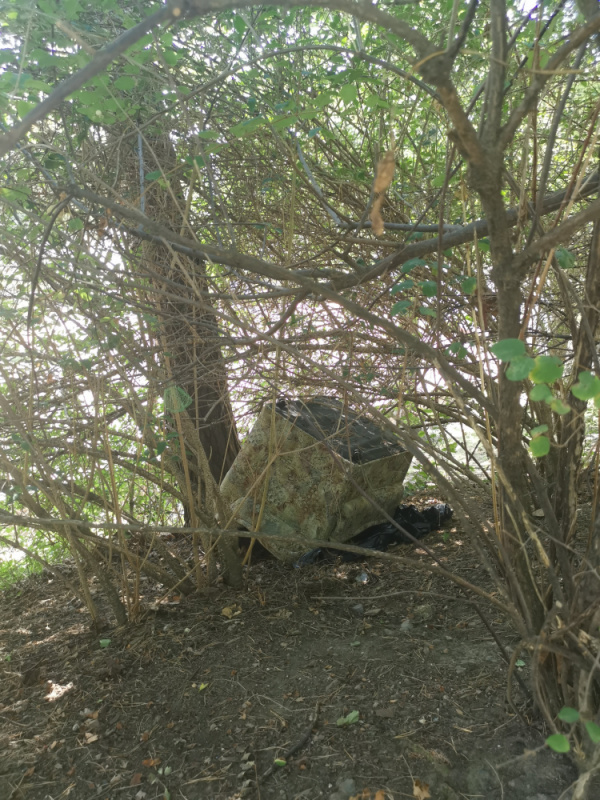 Dobrý den, křeslo tam stále je, v křoví po levé straně nad schody (nejbližší adresa Pod Lipami 1) ve svahu k objektu garáží, poblíž je číslo lampy 302897. Děkujeme za odstranění.