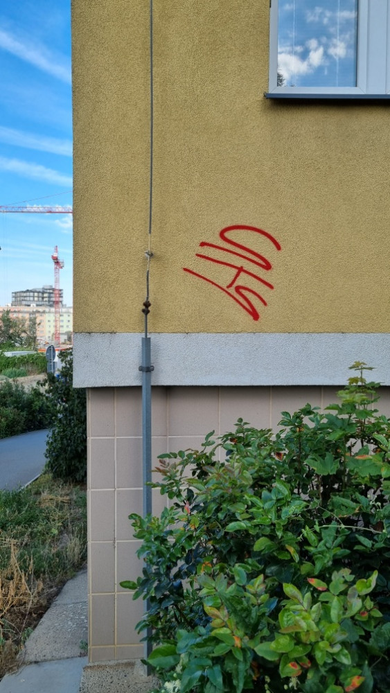 Grafitti na domě SVJ Jilmová 10, Praha 3,