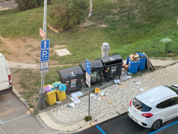 Prosím o uklid kolem sběrných nádob. Opakující se problém. Děkuji