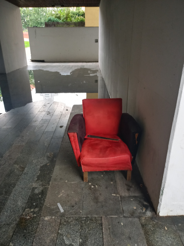 Dobrý den, děkujeme za Váš podnět. Křeslo jsme odvezli. Čistá Trojka