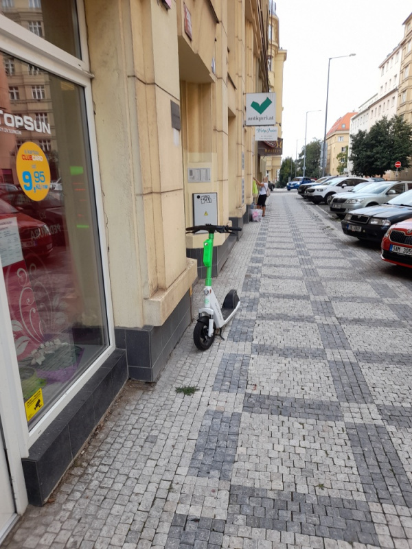 2.) Koloběžka je odstavená dle platných smluvních pravidel v zóně určené platnou smlouvou s Hlavním městem Praha.