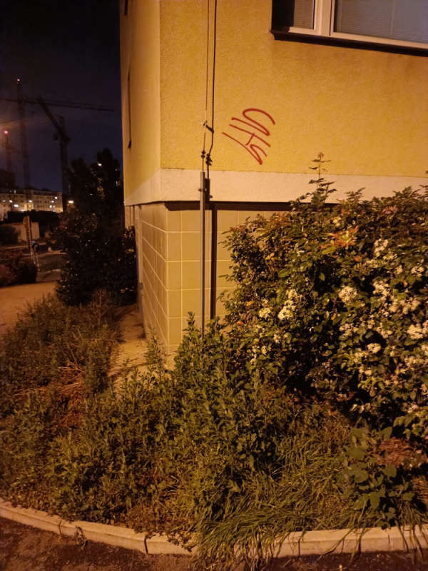 chtěla bych nahlásit opětovné grafity na rohu vchodového domu