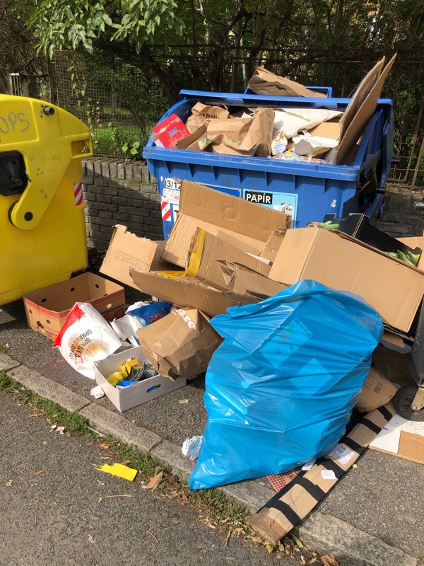 Neporadek kolem kontejneru na trideny odpad