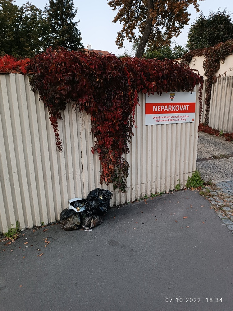 odpadky u vjezdu záchranné služby