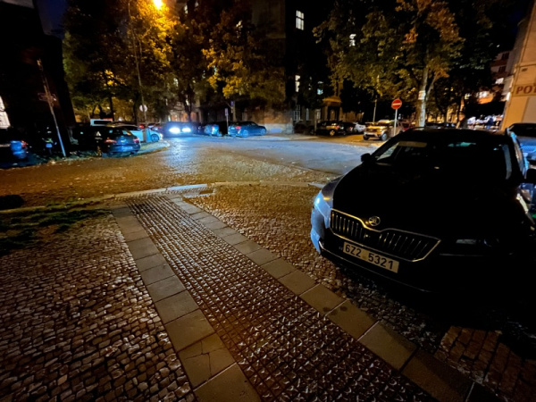 Večer v Sevcikove, již 3 auta na chodníku…kolik ještě dnes přibude?