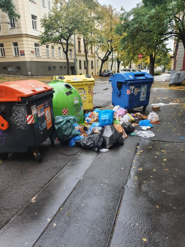 opakovany neporadek kolem popelnic. popelnice vysypane