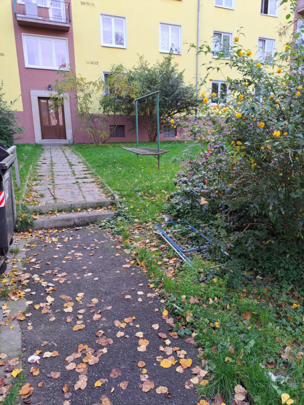 Sušák na prádlo u kontejneru před Luční 12. Děkuji