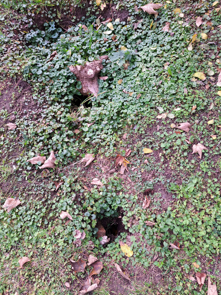 Pozemky jsou v péči Prahy 3 (asi byste mohli na městě vědět,které pozemky spravujete, nicméně jsem to během chvíle dohledala v nahlížení do katastru). Díry jsou hluboké asi půl metru a jak jsem psala, celá ta ploška vypadá podhrabaná. Je to vedle dětského hřiště a syn tam právě strkal klacek,tak jsem si toho všimla.