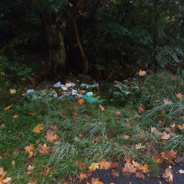 Opakovaně hromada odpadků a kvanta obalů od nápojů a jídla v celém rozsahu cesty