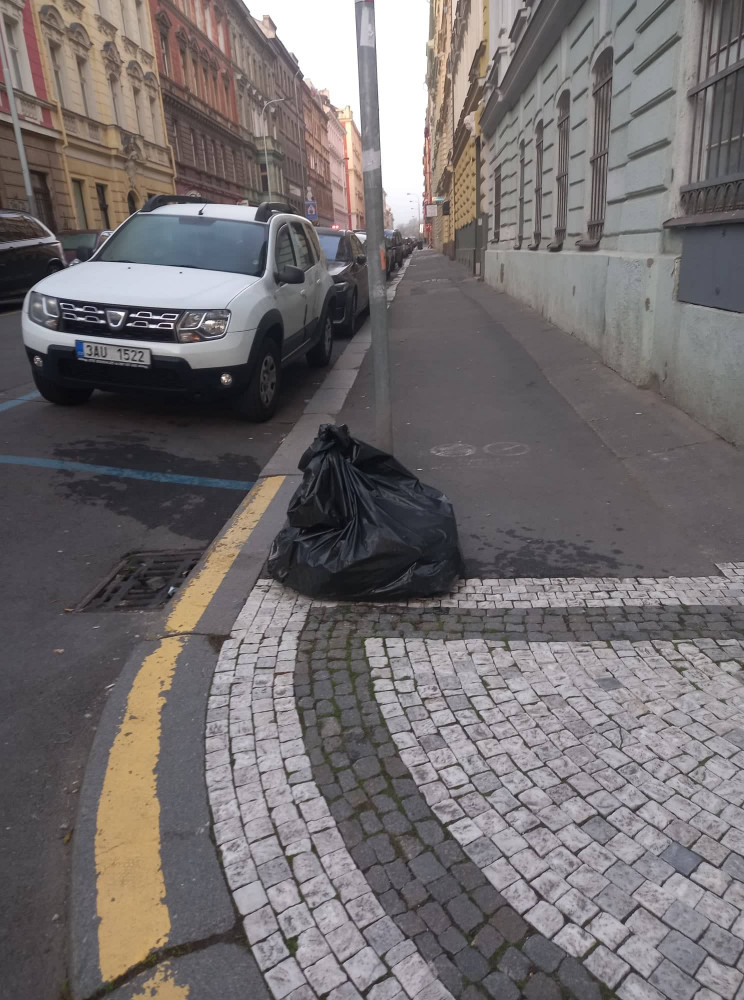 děkujeme za Váš podnět. Jedná se o svozové místo odpadků Pražských služeb. Pytel odvezou!